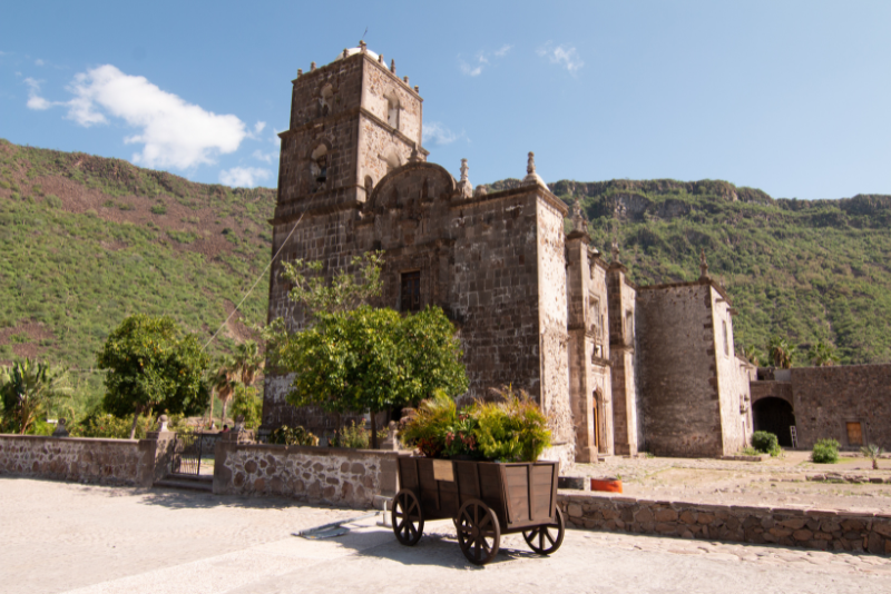 A unos 30 minutos de Loreto, la misión de San Javier está enclavada en las montañas de la sierra de la Giganta. Su iglesia de piedra, bien conservada, y las palmeras que la rodean crean un fondo espectacular para la fotografía histórica y cultural.